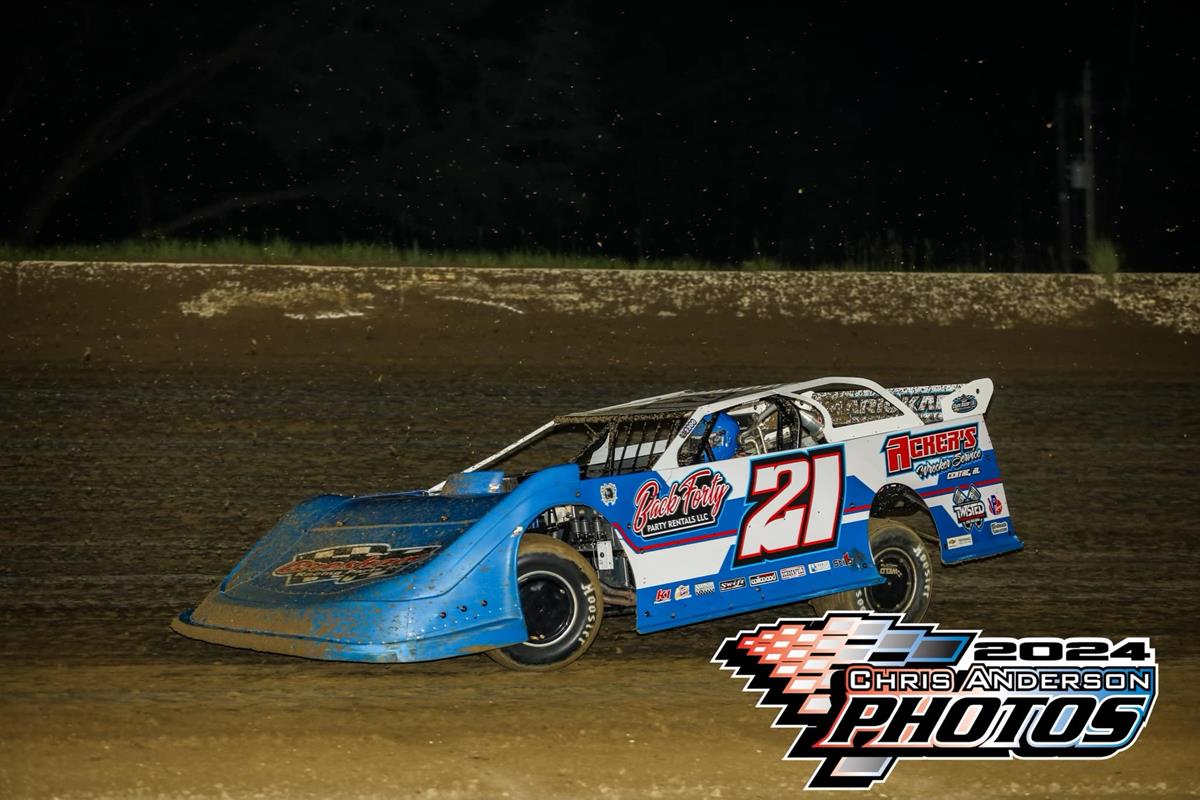 Missing the setup in qualifying, Gresham started 17th in the 15-lap feature and wound up 12th.